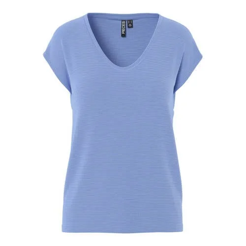 Dit T-shirt van PIECES Curve is een damesmodel met een relaxed pasvorm en korte mouwen. Met kapmouwen, een v-hals en lurexdetails ziet het er modern uit. Je draagt het makkelijk elke dag.