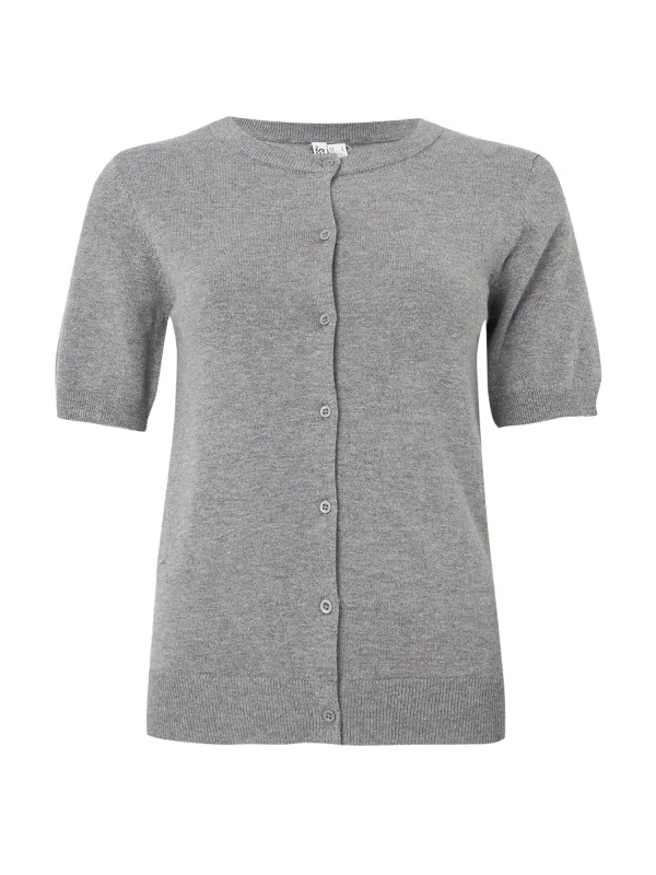 Design: Geribbelde kraag, Rechte zoom, Knop placket; Type sluiting: Knoopsluiting; Materiaal: Knitwear; Halstype: Ronde hals; Motief: Mélange; Extra's: Met textuur, Voelt zacht aan; Pasvorm: Normale pasvorm; Armlengte: Kwartmouw; Lengte: Normale lengte