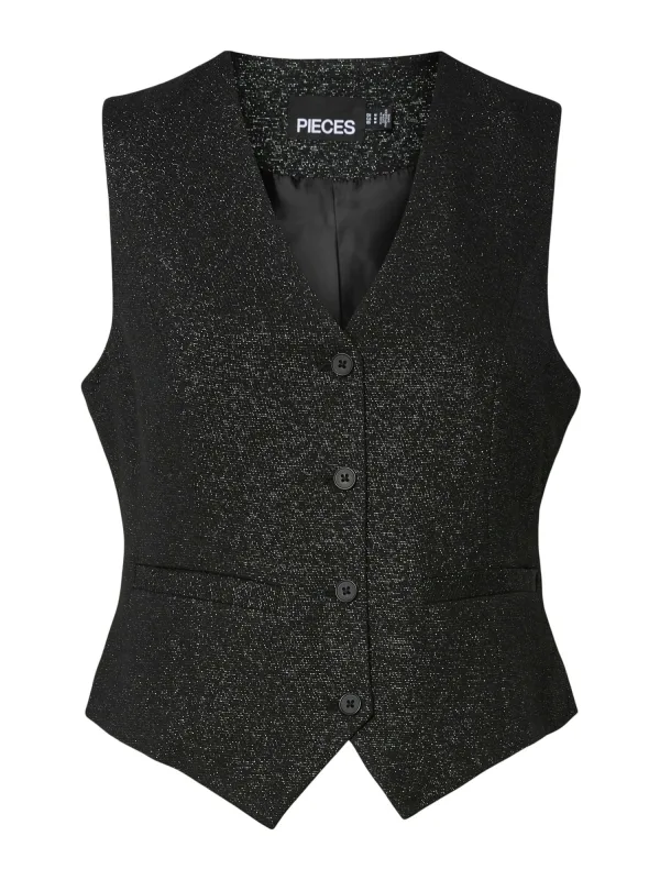 Pieces Gilet Pcbosella Glitter Vest Noos 17160315 Blacksilver Dames