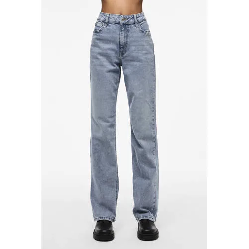 Deze jeans van PIECES is een damesmodel in een light blue denim kleur. Het heeft een high waist en een rechte pijp. De 5-pocket jeans sluit met een rits en knoop. Gemaakt van denim met comfortabele stretch.