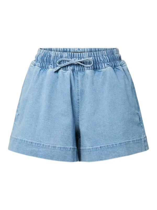 Design: Taille met trekkoord, Elastische taille/zoom; Materiaal: Denim; Motief: Effen; Details: Gedrapeerd; Extra's: Vaste grip; Wassing: Light washed; Lengte: Kort/mini; Pasvorm: Loosefit; Taillehoogte: High waist