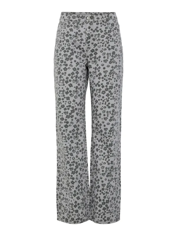 Design: Gevoerde zoom/rand, Ritssluiting, 5-pocket-style; Type sluiting: Ritssluiting; Materiaal: Denim; Motief: Bloemenprint; Extra's: All-over patroon, Riemlussen; Lengte: Lang/maxi; Pasvorm: Wide leg; Taillehoogte: Mid waist