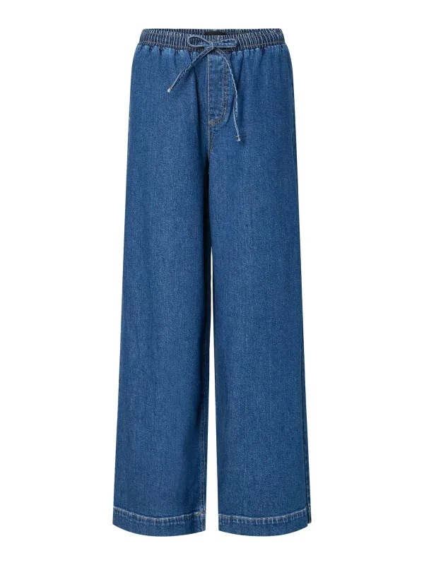 Design: Taille met trekkoord, Elastische taille/zoom; Materiaal: Denim; Motief: Effen; Details: Gedrapeerd; Extra's: Op staal naden; Wassing: Blauw denim; Lengte: Lang/maxi; Pasvorm: Loosefit; Taillehoogte: Mid waist