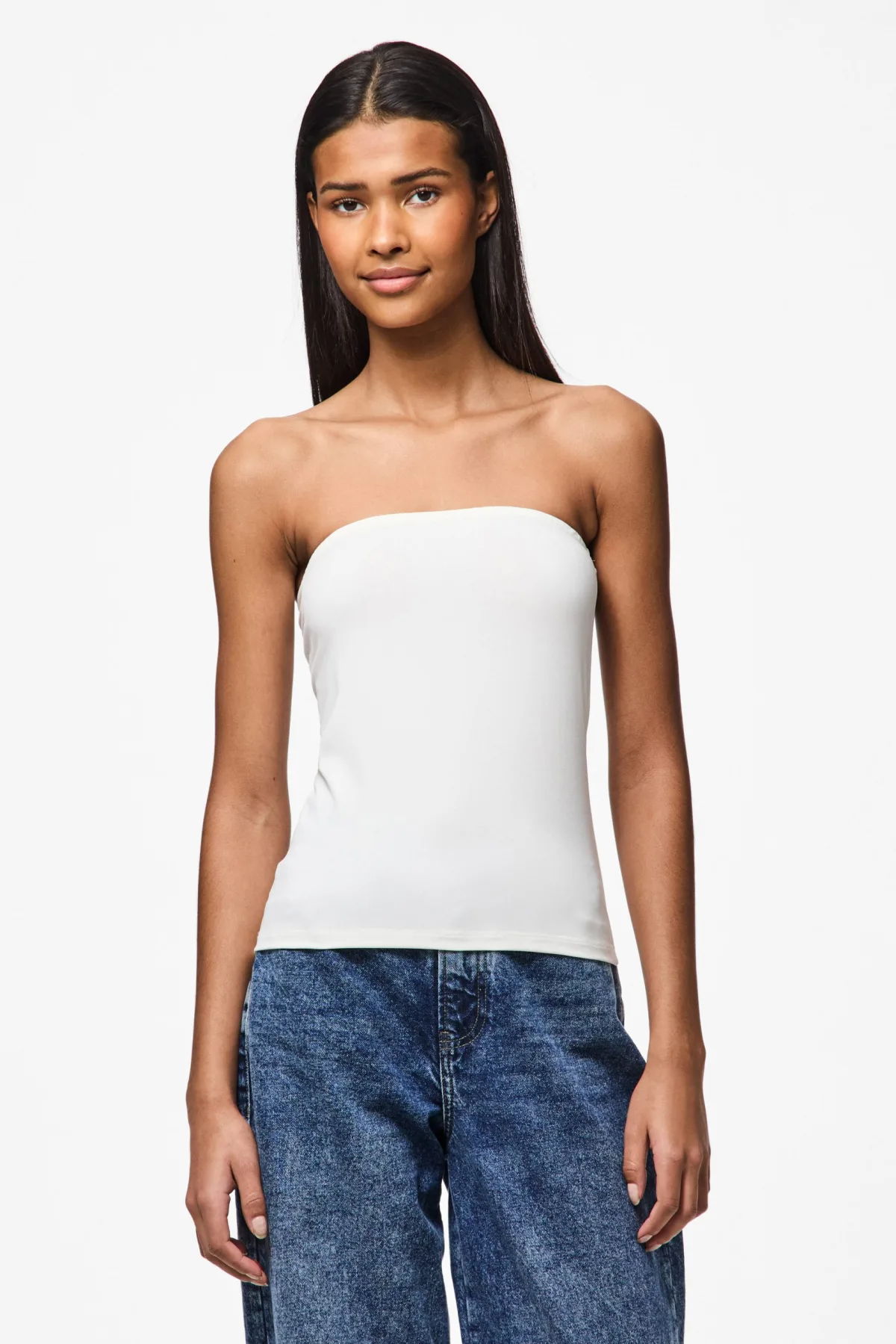 Deze fit top voor dames van PIECES is gemaakt van jersey. Het shirt is strapless.details van deze top:stijlnaam: PCMADISON