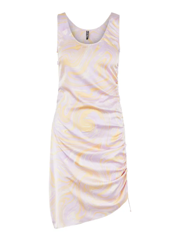 Design: Gevoerde zoom/rand, Asymmetrische zoom, Figuurnaden, Om te knopen/binden, Ritszakken aan de zijkant, Nektape; Type sluiting: Ritssluiting; Halstype: Ronde hals; Soort bandjes: Brede bandjes; Details: Gedrapeerd; Extra's: All-over patroon, Op staal naden, Gladde stof; Lengte: Knielengte; Pasvorm: Aansluitende pasvorm; Armlengte: Mouwloos