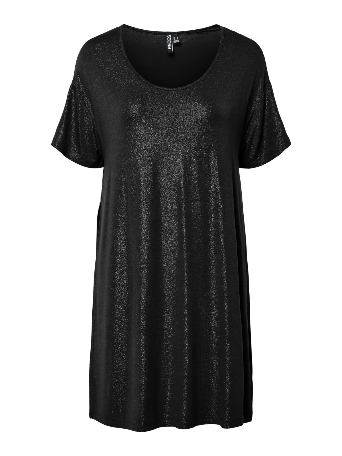 Design: Gevoerde zoom/rand, Overcut schouder; Materiaal: Jersey; Halstype: Ronde hals; Motief: Effen; Details: Gedrapeerd; Extra's: Glitterend, Op staal naden; Lengte: Knielengte; Snit: Recht; Pasvorm: Losse pasvorm; Armlengte: Kwartmouw