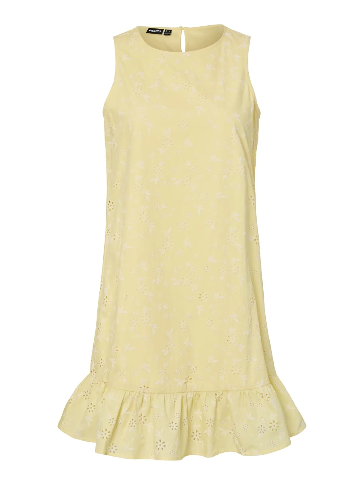 Design: Keyholesluiting; Type sluiting: Knoopsluiting; Materiaal: Katoen; Halstype: Ronde hals; Soort bandjes: Brede bandjes; Details: Cut-outs, Borduursels, Volant, Gedrapeerd, Mesh; Lengte: Kort/mini; Snit: Uitlopend; Pasvorm: Normale pasvorm; Armlengte: Mouwloos