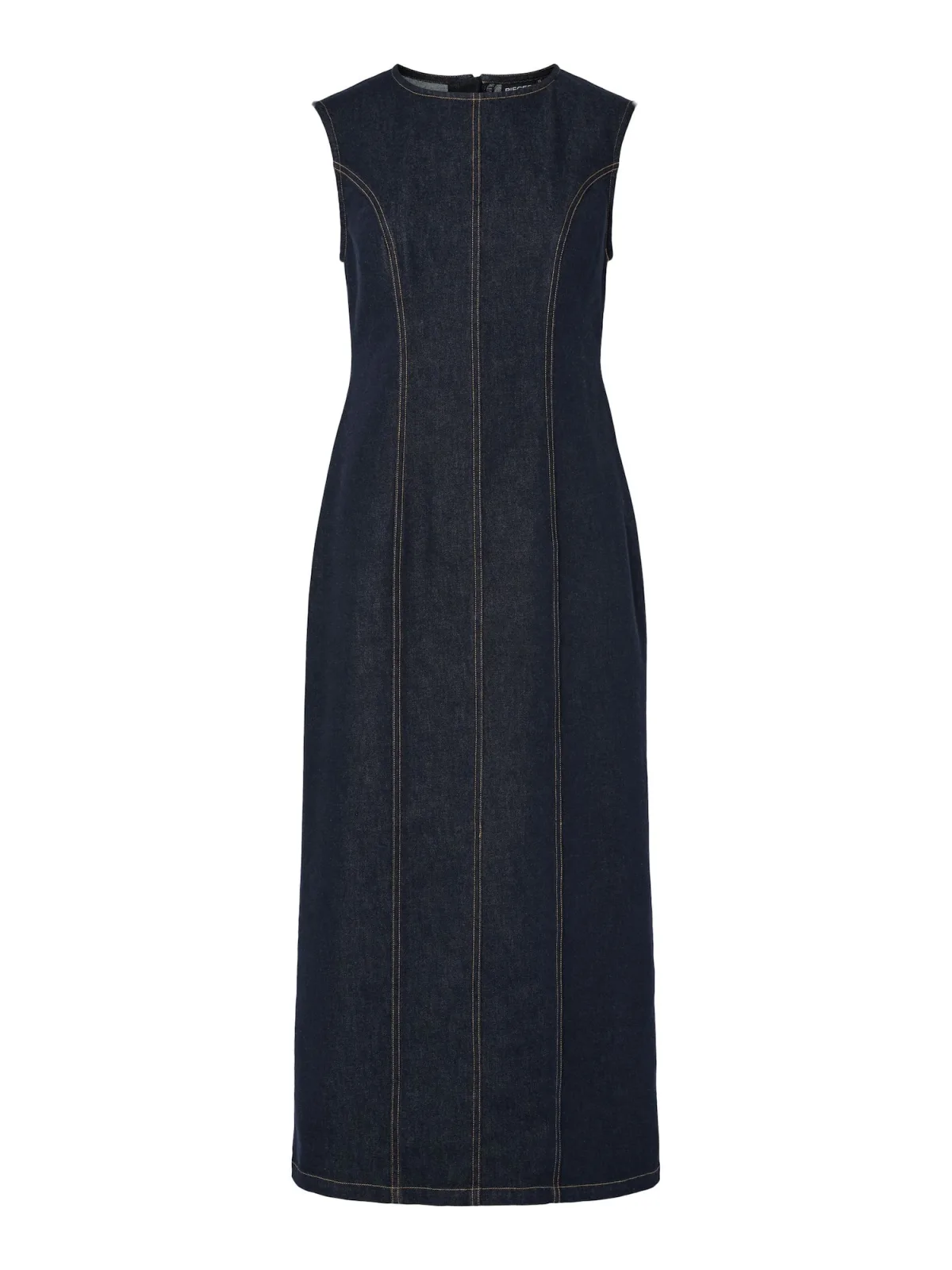 Design: Gevoerde zoom/rand; Type sluiting: Ritssluiting; Materiaal: Denim; Halstype: Ronde hals; Soort bandjes: Brede bandjes; Extra's: Contrasterende naden; Lengte: 7/8 lengte; Snit: Getailleerd; Pasvorm: Normale pasvorm; Armlengte: Mouwloos