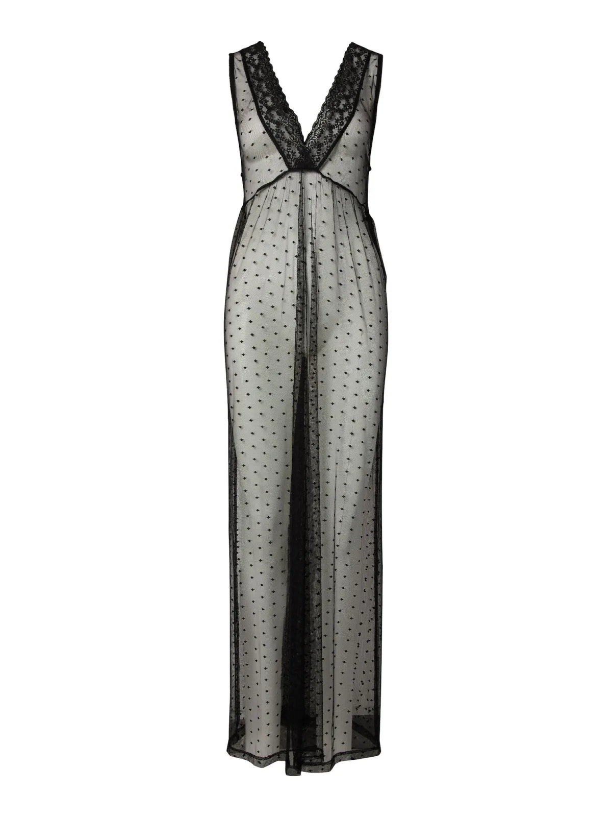 Design: Gevoerde zoom/rand; Halstype: V-hals; Motief: Effen; Soort bandjes: Brede bandjes; Details: Borduursels; Extra's: Licht transparant; Lengte: Lang/maxi; Pasvorm: Losse pasvorm; Armlengte: Mouwloos