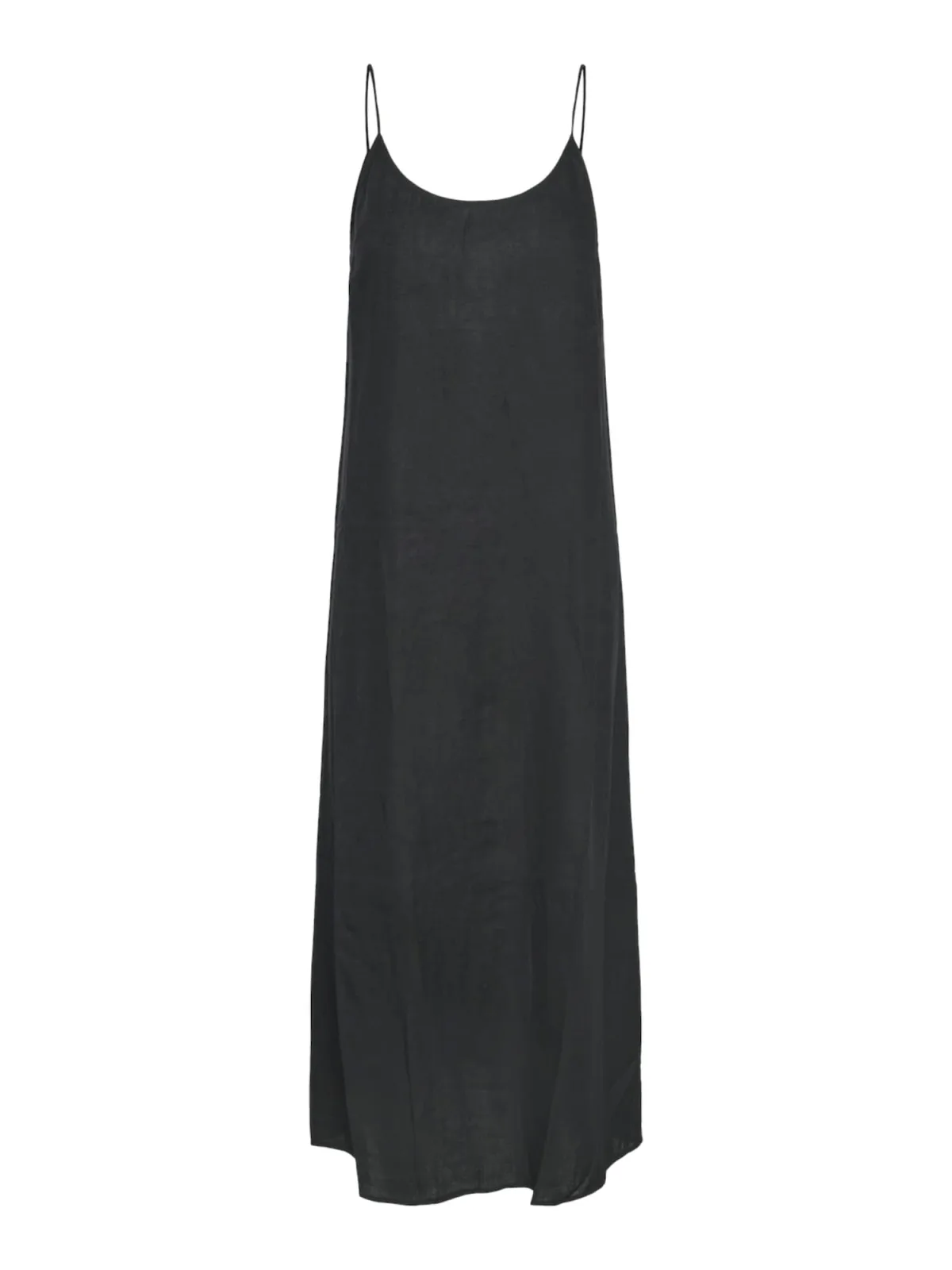Design: Uitgesneden rug, Losvallend model; Materiaal: Viscose; Halstype: Ronde hals; Motief: Effen; Soort bandjes: Spaghettibandjes; Extra's: Op staal naden, Lichte stof; Lengte: 7/8 lengte; Snit: Uitlopend; Pasvorm: Losse pasvorm; Armlengte: Mouwloos