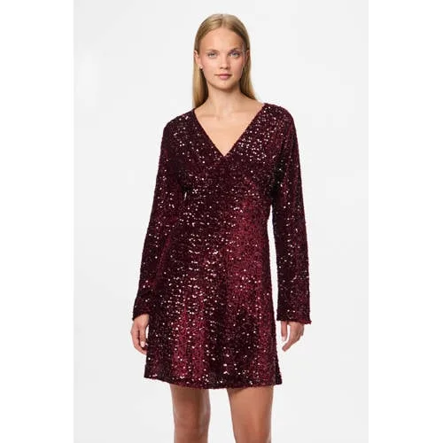 PIECES korte jurk met pailletten donkerrood Prijzen