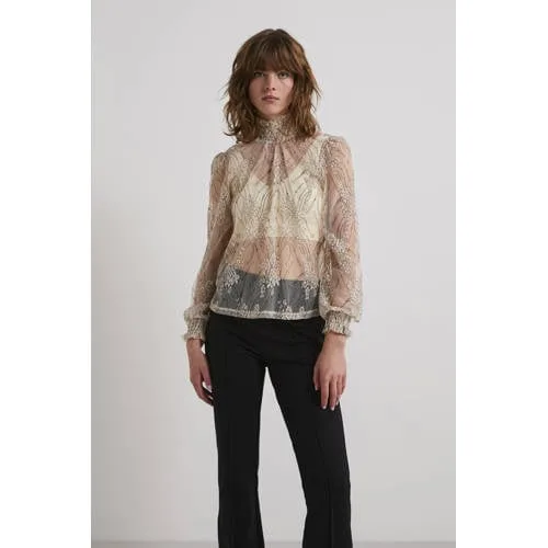 PIECES mesh top ecru met pailletten Prijzen