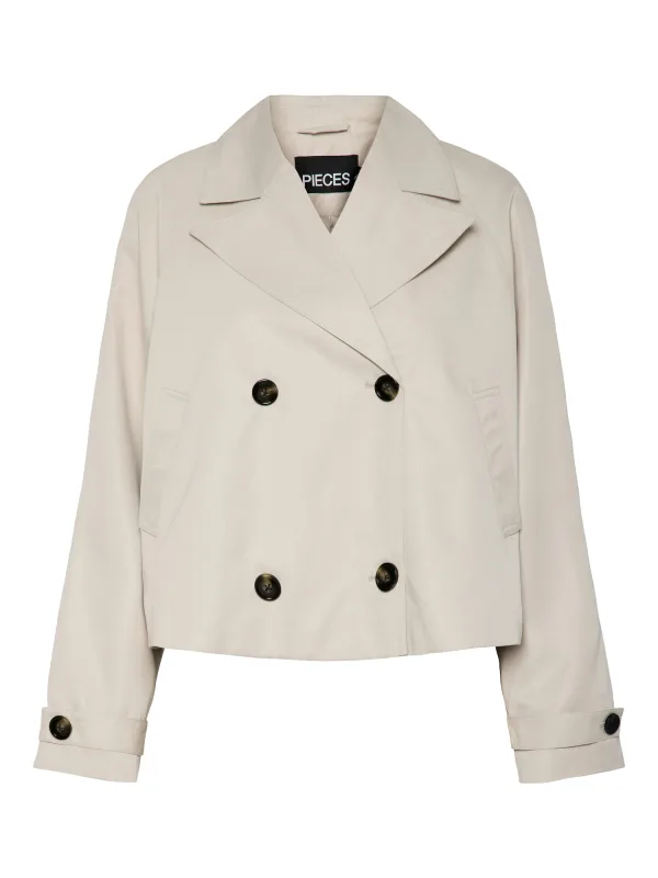 PIECES PCSCARLETT LS SHORT TRENCHCOAT NOOS Dames Trenchcoat – Silver Gray Prijzen