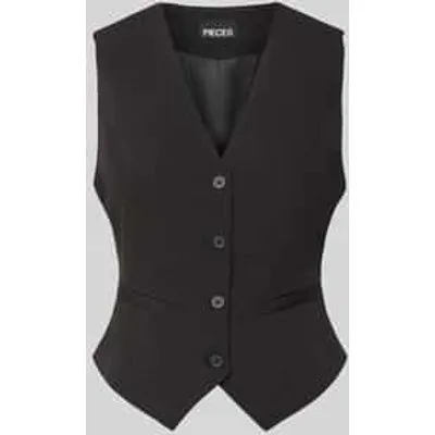 Dames gilet van Pieces;Model 'Bozzy Vest';Look: effen;Pasvorm: Slim fit;Applicatie: Labelstikken;Hals: diepe V-hals;Rompzoom: asymmetrisch;Knoopsluiting: enkelrijig;Zakken: aangeduide zakken