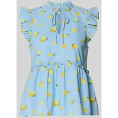 dames strikblouse van Pieces;Model 'Emma';look: all-over motief;Pasvorm: regular fit;Kraagmodel: Volant-kraag;Details: peplum;hals: V-hals met strikdetail;mouwvorm: zonder mouwen;Mouwboord: Volants;Materiaal: puur katoen