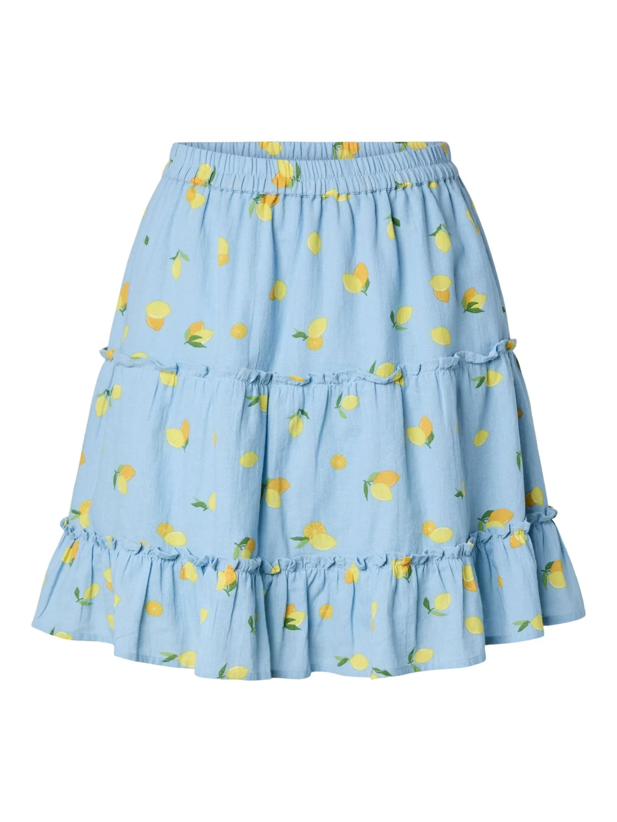 Specificaties: PIECES Rok ‘PCEmma’ lichtblauw / limoen / grasgroen