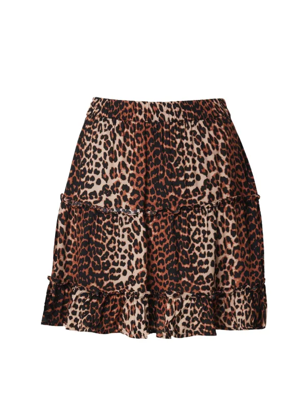 Design: Wijde taille, Elastische taille/zoom; Materiaal: Viscose; Motief: Dierenprint; Rokvorm: A-lijn rok; Details: Ruches, Volant, Gedrapeerd; Extra's: All-over patroon, Gladde stof; Lengte: Kort/mini; Pasvorm: Normale pasvorm