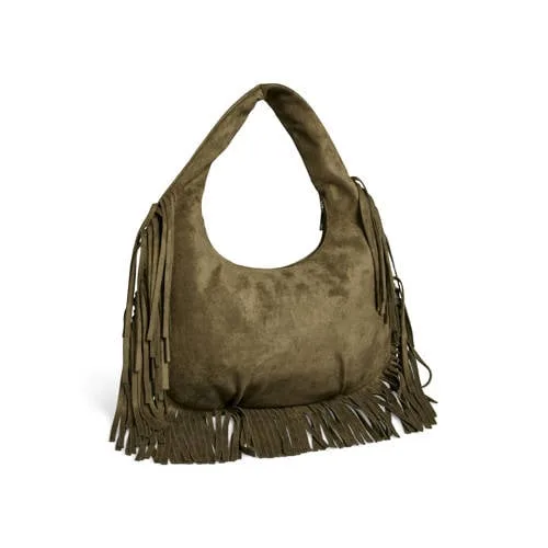 PIECES schoudertas PCFINA met franjes kaki