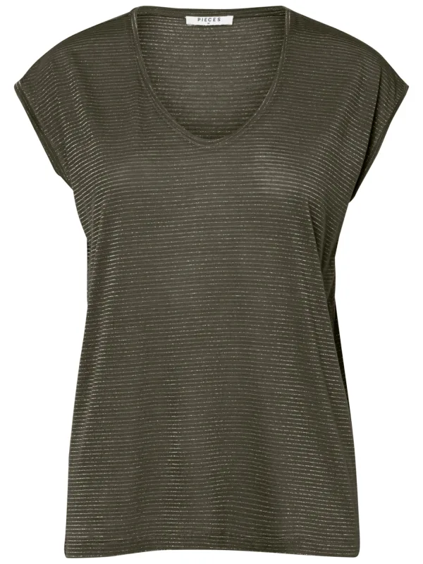 PIECES PCBILLO TEE LUREX STRIPES NOOS Dames T-shirt - Maat...