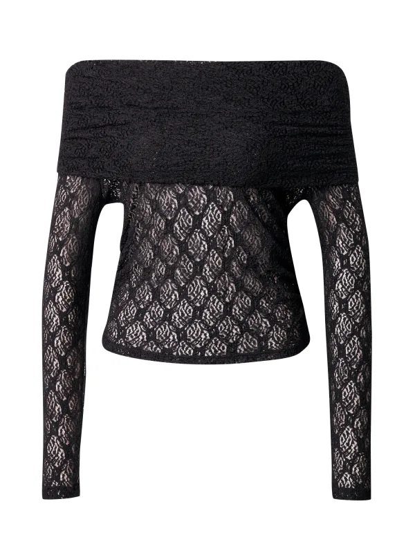 Design: Recht model, Strapless/off-shoulder; Halstype: Carmen hals; Motief: Effen; Details: Kant; Extra's: Lichte stof, Met textuur; Pasvorm: Slanke pasvorm; Armlengte: Lange mouw; Lengte: Normale lengte