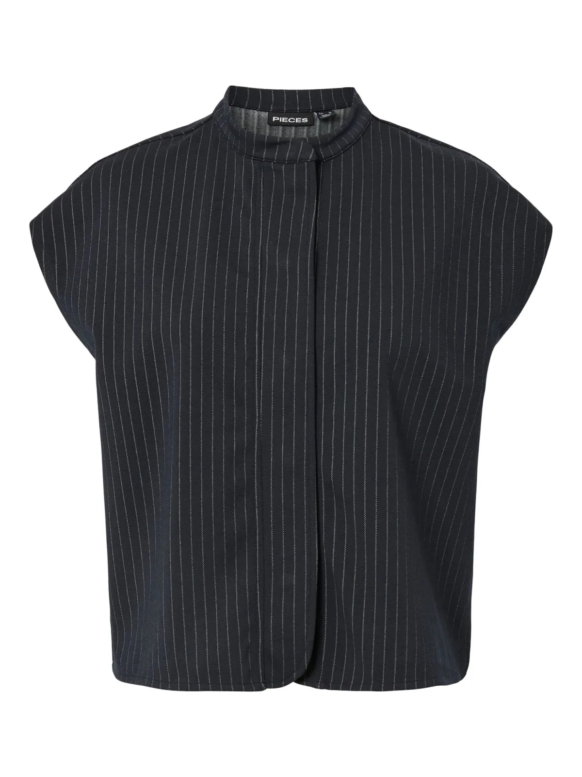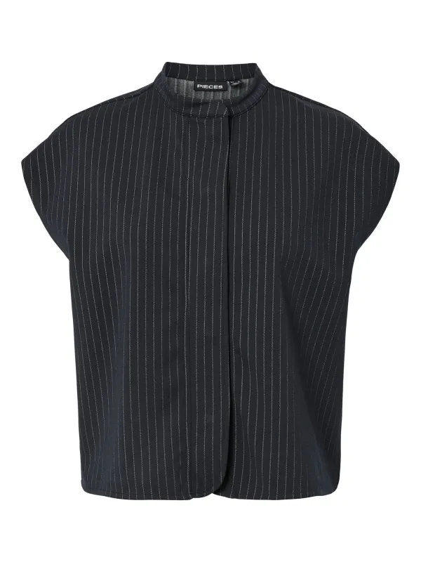 Specificaties: PIECES Shirt ‘PCBia’ marine / lichtgrijs