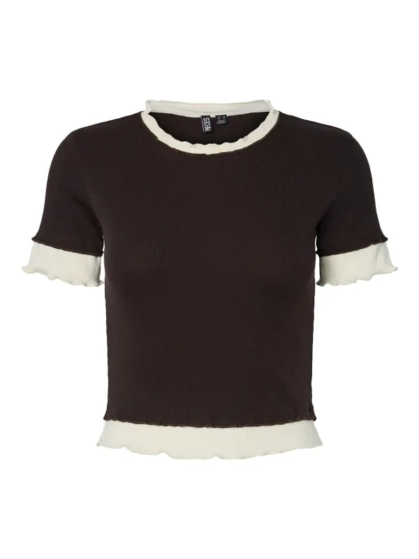 PIECES Shirt ‘PCJemma’ bruin / wit Prijzen