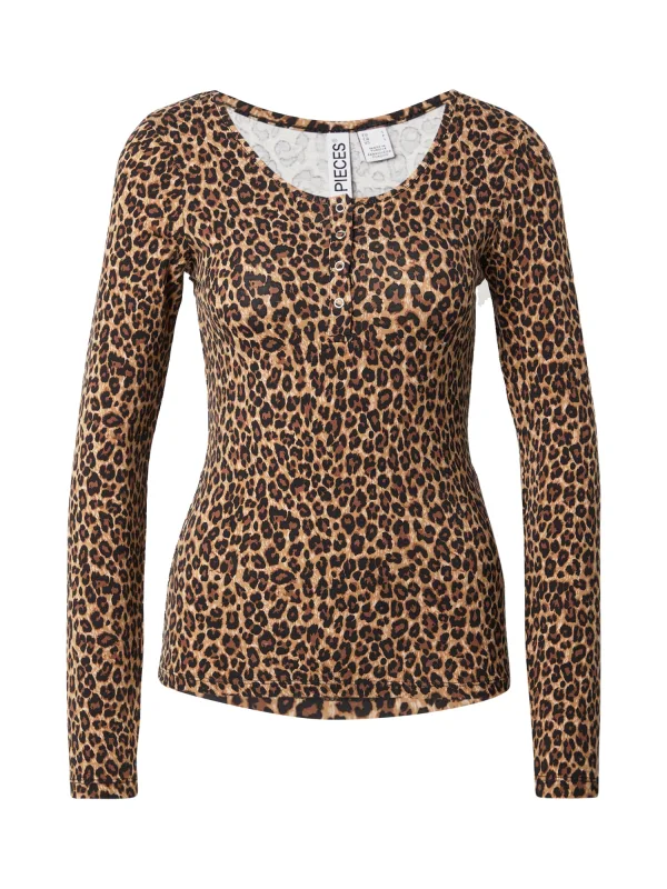 PIECES Shirt ‘PCKITTY’ crème / camel / cognac / zwart