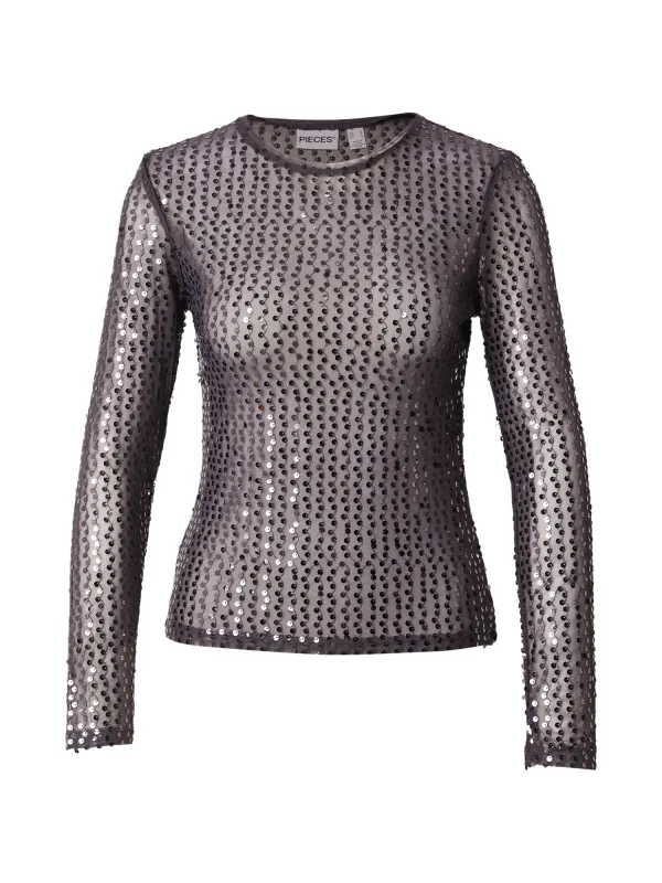 Design: Gevoerde zoom/rand, Rechte zoom; Halstype: Ronde hals; Details: Pailletten; Extra's: Glitterend, Sterk transparant; Pasvorm: Slanke pasvorm; Armlengte: Lange mouw; Lengte: Normale lengte