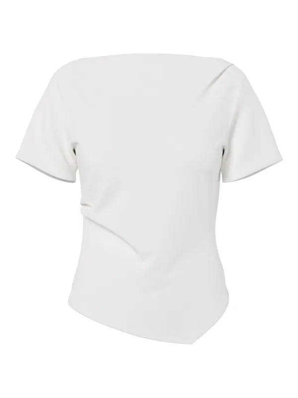 Design: Gevoerde zoom/rand, Asymmetrische zoom; Materiaal: Jersey; Halstype: Boothals; Motief: Effen; Details: Gedrapeerd; Extra's: Op staal naden, Verlengd voorpand; Pasvorm: Slanke pasvorm; Armlengte: Kwartmouw; Lengte: Normale lengte
