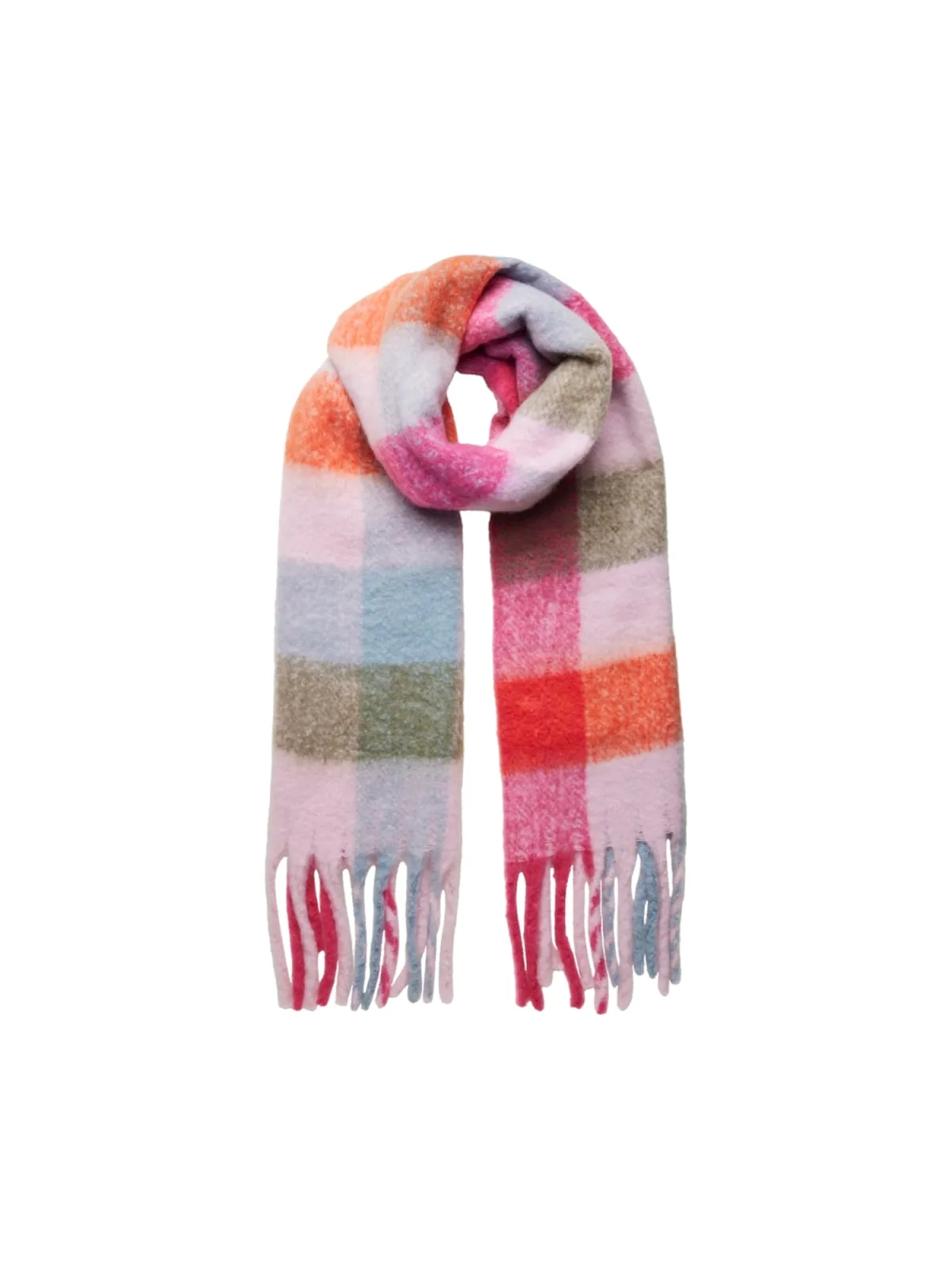 Specificaties: PIECES Sjaal ‘PCBEA’ lichtblauw / olijfgroen / kreeft / pastelroze