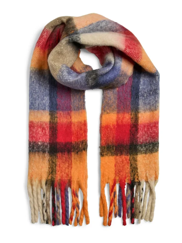 Specificaties: PIECES Sjaal ‘PCMIDA’ crème / navy / oranje / knalrood