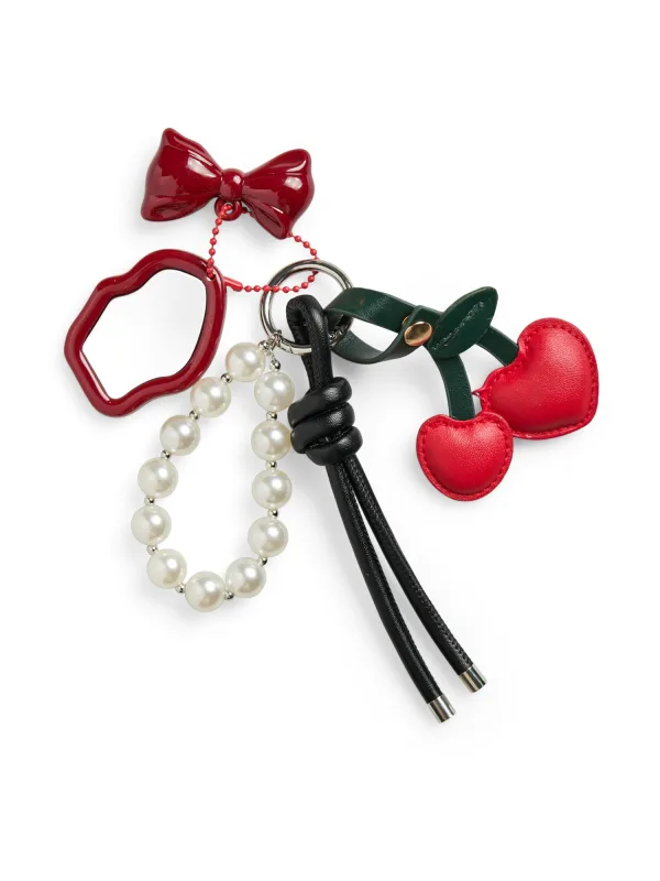 Specificaties: PIECES Sleutelhanger ‘PCDRILLA’ donkerrood / zwart / zilver / parelwit