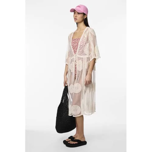 Deze ecru strandtuniek van PIECES is een lichte laag voor over je badkleding, ideaal voor zonnige dagen aan zee of bij het zwembad. De tuniek heeft een openvallende hals en driekwart mouwen, waardoor je schouders en armen net genoeg bedekt zijn terwijl het luchtig blijft. De striksluiting in de taille zorgt voor een vrouwelijk silhouet dat je zelf strakker of losser kunt knopen.Verfijnde details voor ontspannen dagen Gemaakt van 68% katoen / 32% polyamide, een soepel, geweven materiaal dat prettig aanvoelt op de huid Effen ecru kleur die rustig oogt en makkelijk combineert met verschillende bikinikleuren Driekwart mouwen voor een lichte bedekking en een ontspannen uitstraling Openvallende hals die je badkleding subtiel laat zien Striksluiting in de taille voor een verstelbare pasvorm Geschikt voor het lente seizoen en warme dagen Maatadvies: dit artikel valt normaalIdeaal over je badkledingDraag de tuniek losjes over je bikini of badpak als je even wat wilt bedekken tijdens een strandwandeling, lunch of het halen van een drankje. Het lichte materiaal en de soepel vallende pasvorm maken het een praktische keuze in je strandtas.PIECES als dagelijkse favorietPIECES ontwerpt toegankelijke mode met een moderne uitstraling, geschikt voor alledaagse momenten. De collectie sluit aan op actuele trends en biedt kleding die makkelijk te combineren is, zodat je met weinig moeite een complete look samenstelt.Een ontspannen, lichte strandlaag die je zomergarderobe op een subtiele manier aanvult.