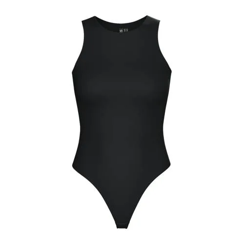 Stringbody PCADINA van PIECES. Deze elastische body sluit naadloos aan op je lichaam, waardoor je bovenkleding er mooi overheen valt. De mouwloze body heeft een ronde hals en drukknoopjes aan de onderkant.