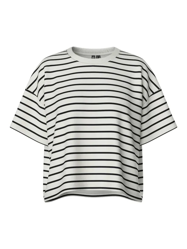 Design: Gevoerde zoom/rand, Overcut schouder; Materiaal: Gerecycled materiaal; Halstype: Ronde hals; Motief: Gestreept; Extra's: All-over patroon, Voelt zacht aan; Pasvorm: Losse pasvorm; Armlengte: Halve mouw; Lengte: Normale lengte