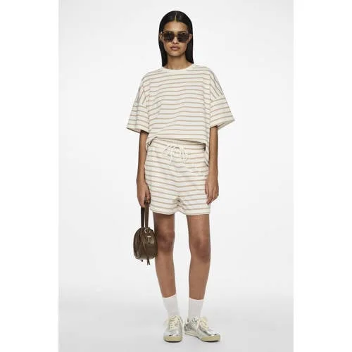 Voor ontspannen dagen thuis of een casual look onderweg is deze PIECES PCCHILLI sweatshort een praktische basis in je garderobe. De korte broek heeft een wit/bruine streep, wat zorgt voor een rustig, modern beeld. De zachte sweatstof met katoen voelt prettig aan op de huid en de relaxte pasvorm geeft je veel bewegingsvrijheid. Geschikt als loungewear, maar ook goed te combineren met een simpel T-shirt of hoodie.Comfort in een sportieve streep Wit/bruine strepen voor een casual, gestreepte look Trekkoord in de taille zodat je de wijdte eenvoudig aanpast Zakken voor, handig voor je telefoon, sleutels of je handen Zachte sweatkwaliteit met katoen voor een prettig gevoel Machinewasbaar en geschikt voor drogen op lage temperatuur Valt normaal volgens het maatadvies Geschikt voor alle seizoenen, van lente tot en met winterRelaxte korte broek voor elke dagDeze sweatshort is gemaakt voor relaxmomenten. Draag hem op de bank, tijdens een vrije dag of voor een snelle boodschap. Met een basic top en sneakers creëer je in korte tijd een complete, comfortabele outfit.PIECES, jouw dagelijkse favorietenPIECES biedt toegankelijke mode-items die makkelijk te combineren zijn. De collecties richten zich op moderne basics en trendgevoelige styles die je elke dag kunt dragen. Zo vul je je kast met kledingstukken die goed aansluiten op een druk leven.Een veelzijdige sweatshort die je het hele jaar door kunt dragen.