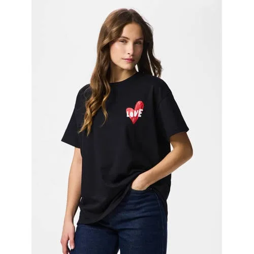 PIECES T-shirt met backprint met hartjes zwart Prijzen