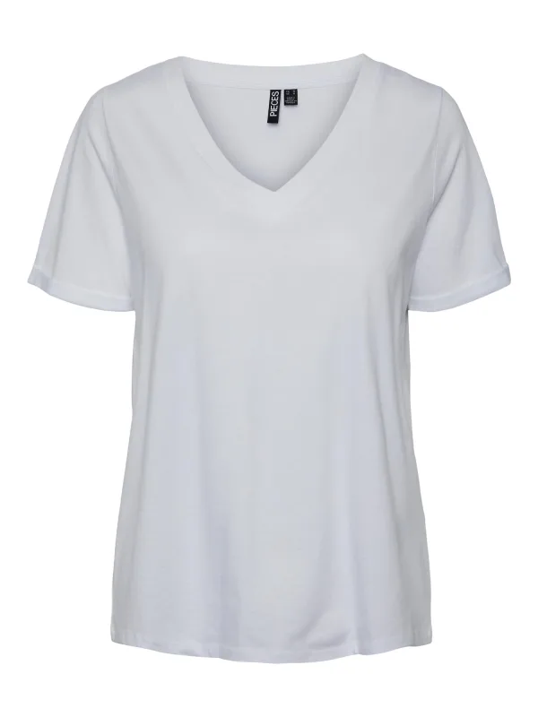 Pieces T-shirt Pcria Ss V-neck Solid Tee Noos Bc 17120455 Bright White Dames