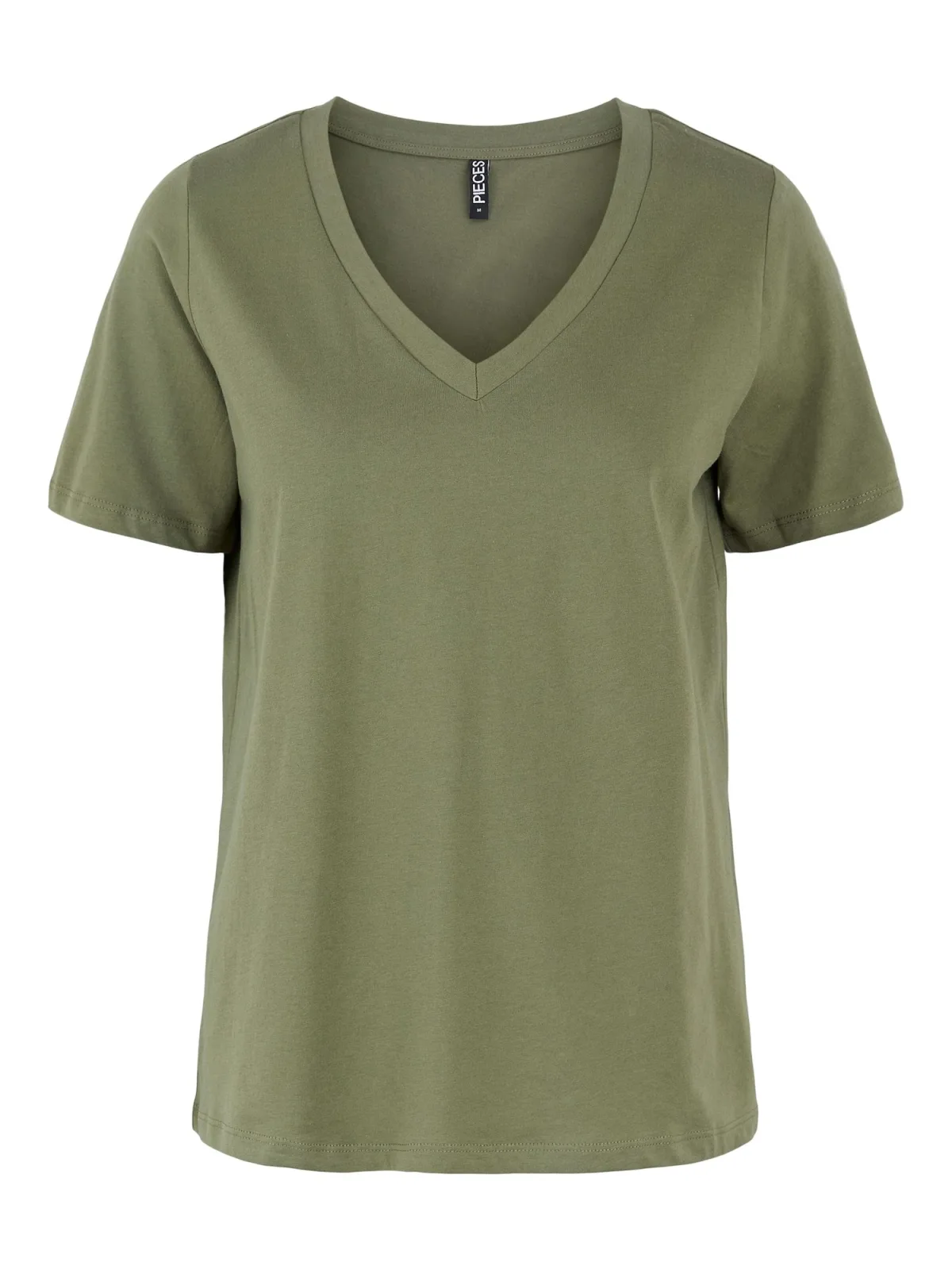 Pieces T-shirt Pcria Ss V-neck Solid Tee Noos Bc 17120455 Deep Lichen Green Dames
