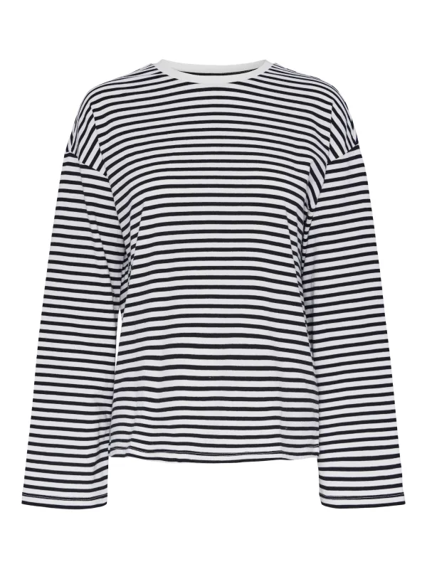 Pieces T-shirt Pcsadie Ls Top Noos 17146655 Cloud Dancer Stripes/ Black Dames