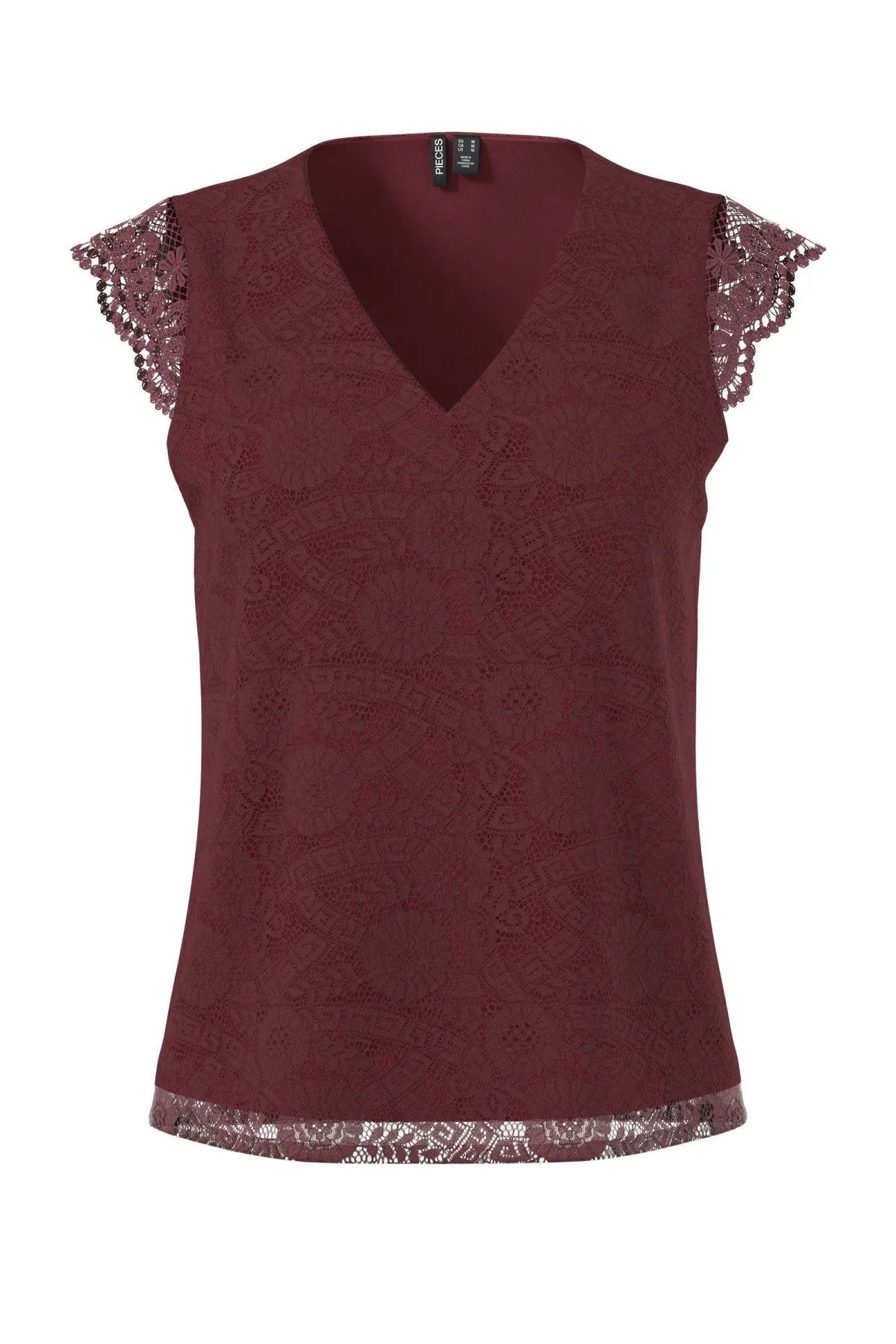 - Bij wehkamp.nl kun je PIECES kanten top donkerrood kopen voor slechts €19,00