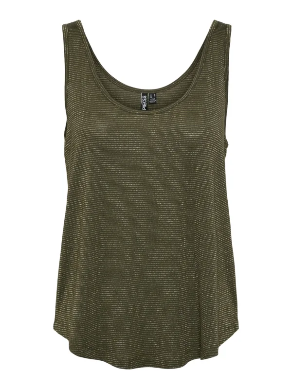 Specificaties: PIECES Top ‘Billo’ goud / donkergroen