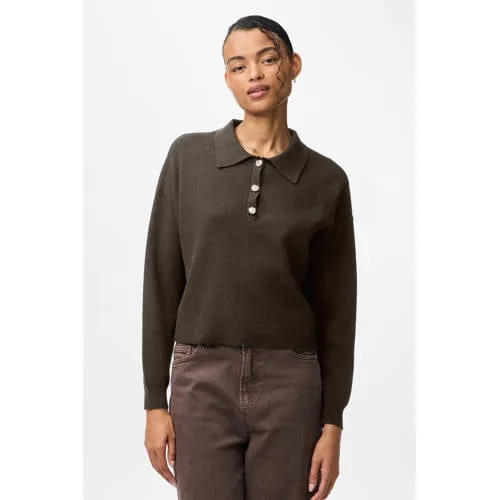 Design: Knop placket, Geribd ceintuurtje, Turn-down kraag; Type sluiting: Knoopsluiting; Materiaal: Knitwear; Halstype: Polokraag; Motief: Effen; Extra's: Op staal naden; Pasvorm: Normale pasvorm; Armlengte: Lange mouw; Lengte: Korte pasvorm