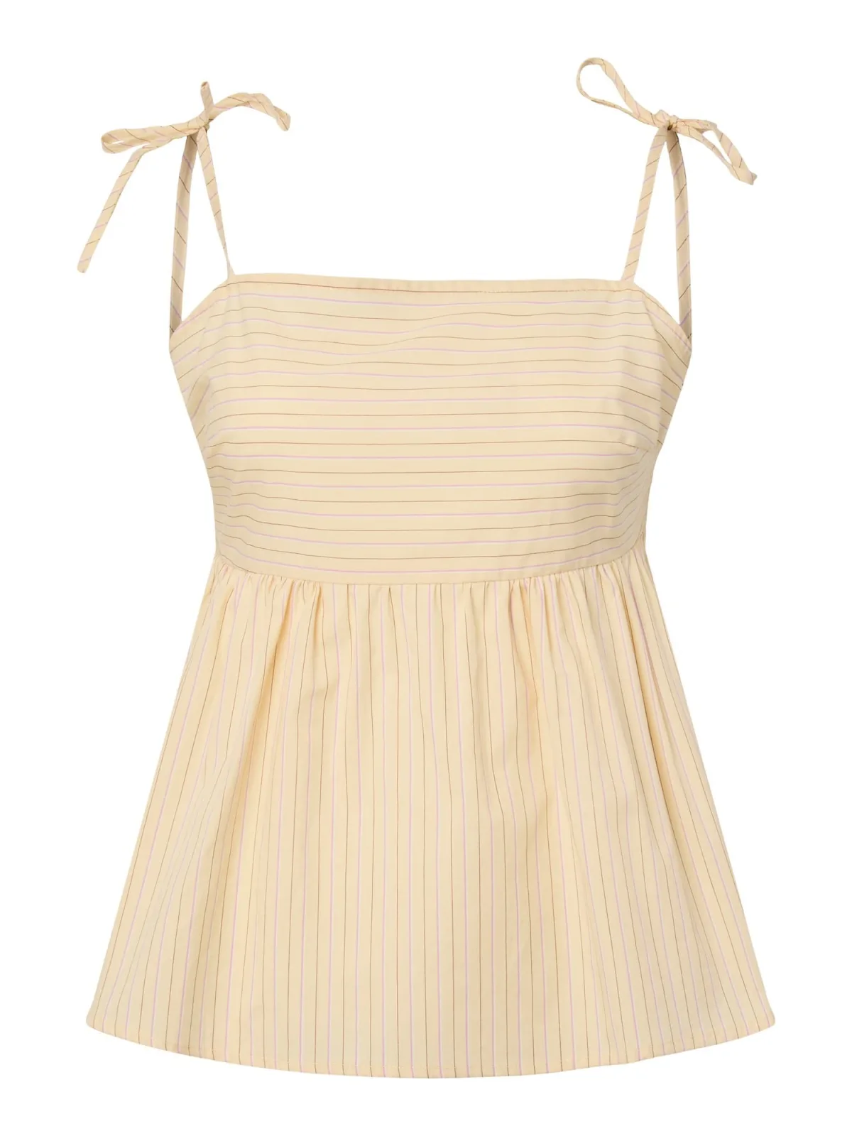 Design: Gevoerde zoom/rand; Materiaal: Jersey; Halstype: Carréhals; Motief: Krijtstrepen; Soort bandjes: Spaghettibandjes; Details: Gedrapeerd; Extra's: Op staal naden; Pasvorm: Normale pasvorm; Armlengte: Mouwloos; Lengte: Normale lengte