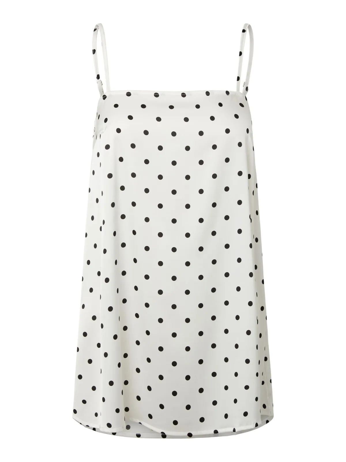 Design: Gevoerde zoom/rand; Halstype: Carréhals; Motief: Gestippeld; Soort bandjes: Spaghettibandjes; Extra's: All-over patroon; Pasvorm: Wijde pasvorm; Armlengte: Mouwloos; Lengte: Normale lengte