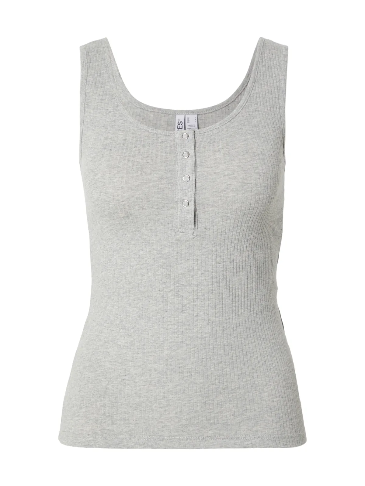 Design: Gevoerde zoom/rand, Drukknopen, Rechte zoom; Materiaal: Jersey; Halstype: Henley hals; Motief: Mélange; Soort bandjes: Normale bandjes; Extra's: Op staal naden, Voelt zacht aan; Pasvorm: Aansluitende pasvorm; Armlengte: Mouwloos; Lengte: Normale lengte
