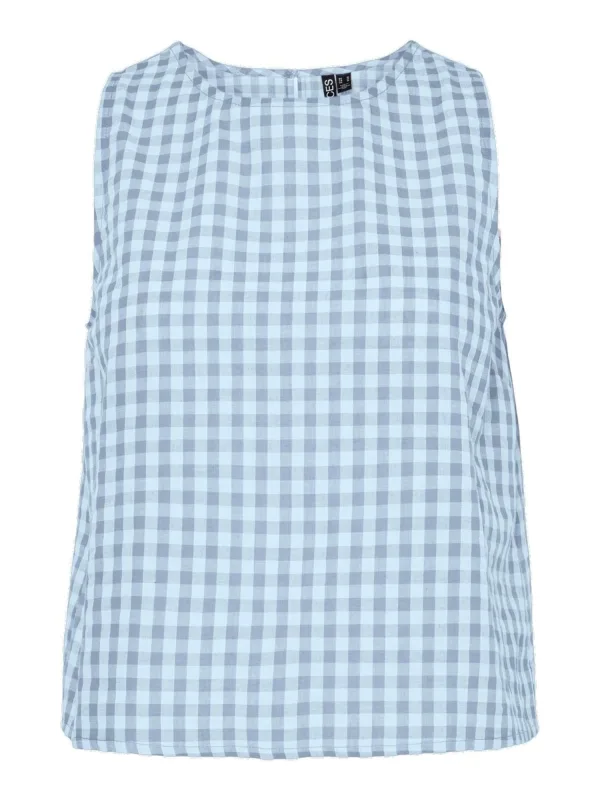 Blouse type: Klassieke blouse; Design: Gevoerde zoom/rand, Keyholesluiting; Materiaal: Katoen; Halstype: Ronde hals; Motief: Geruit; Kraag: Zonder kraag; Soort bandjes: Brede bandjes; Details: Cut-outs; Extra's: All-over patroon; Pasvorm: Normale pasvorm; Armlengte: Mouwloos; Lengte: Normale lengte