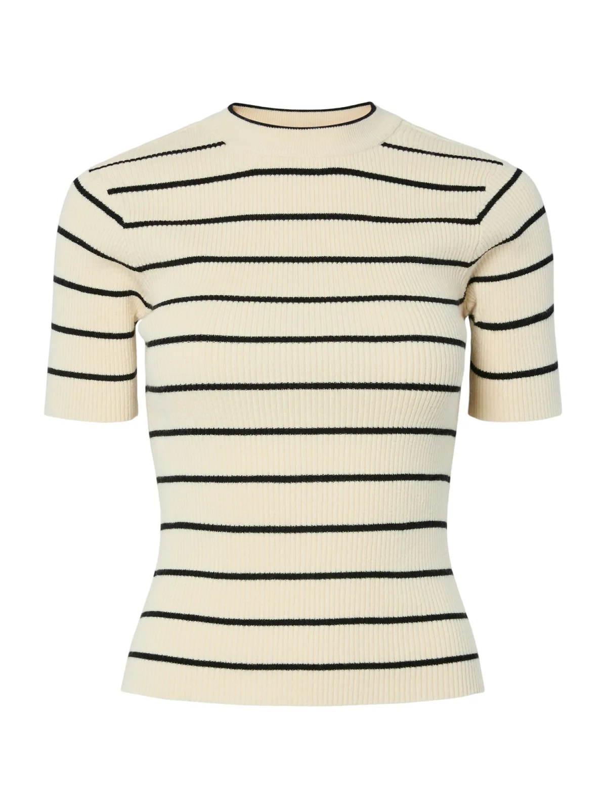 Design: Geribbelde kraag, Rechte zoom, Geribd ceintuurtje; Materiaal: Knitwear; Halstype: Ronde hals; Motief: Gestreept; Extra's: All-over patroon, Voelt zacht aan; Pasvorm: Slanke pasvorm; Armlengte: Kwartmouw; Lengte: Normale lengte