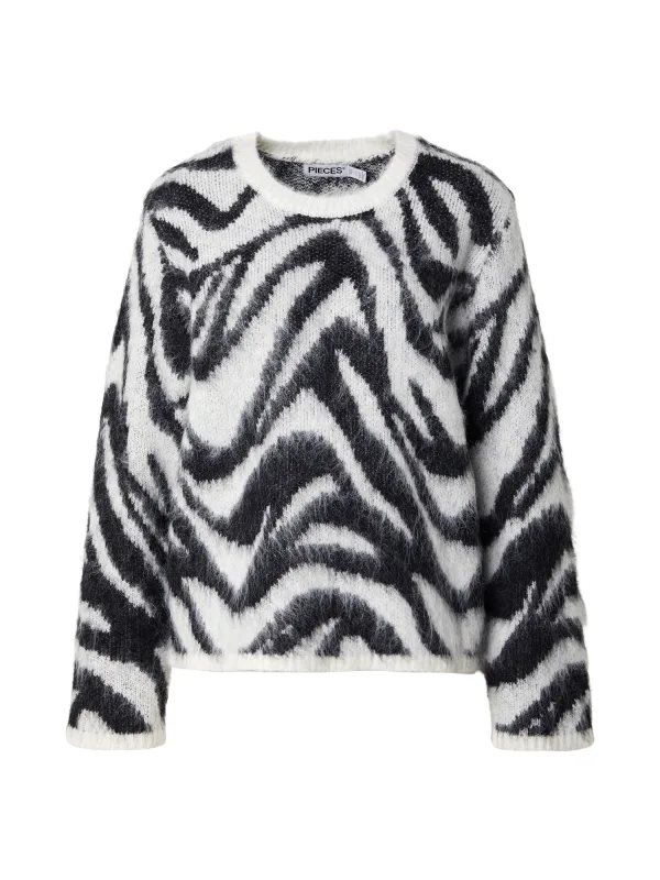 PIECES Trui ‘PCMYNTHE’ zwart / wit