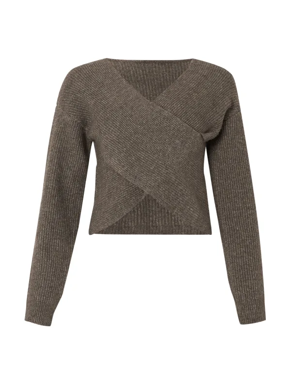 Design: Geribbeld gebreid, Overcut schouder, Verlengd rugpand; Materiaal: Gerecycled materiaal; Halstype: V-hals; Motief: Mélange; Details: Wikkel design; Extra's: Met textuur, Voelt zacht aan; Pasvorm: Losse pasvorm; Armlengte: Lange mouw; Lengte: Korte pasvorm